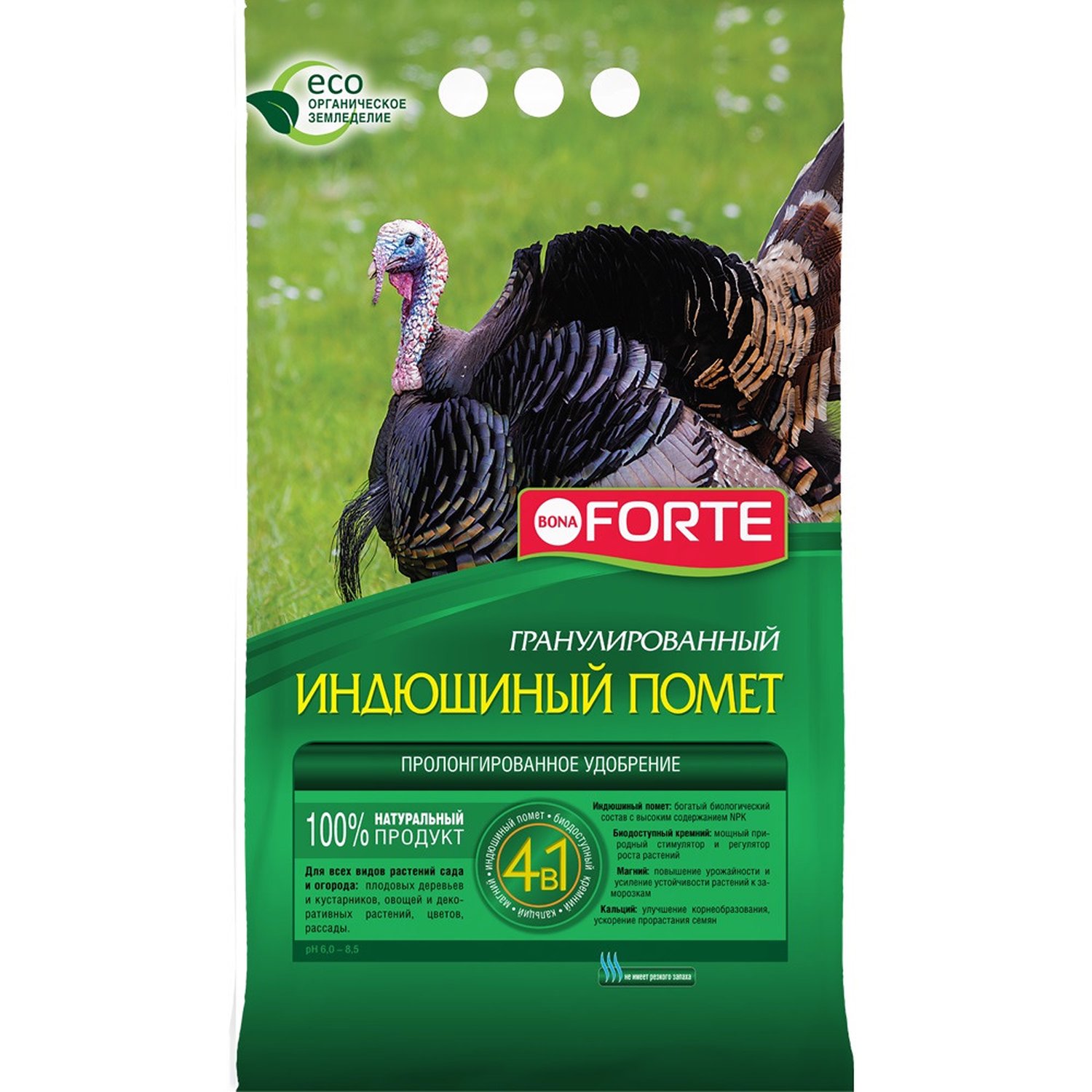Предназначено для естественного восстановления и повышения плодородия почвы, обеспечения сбалансированного питания и формирования мощной корневой системы растений, приживаемости рассады, а также ускорения сроков созревания урожая.
